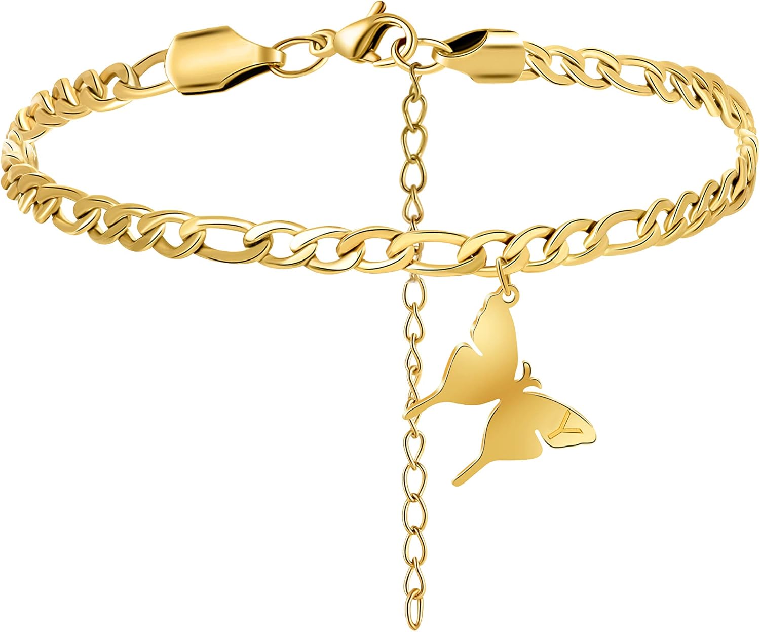 Classic Fashion Gold Butterfly Anklets For Women Teen Girls 18k Real Gold Figaro Chain Initial A Engraved Beach Jewelry Ankle Bracelets For Daughter Mom Best Friend Sister Bridesmaid Fiancee Bff Personalized Clothing Fashionable 40und8 De